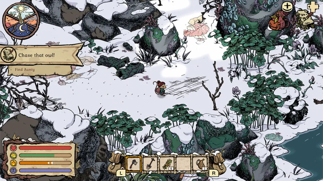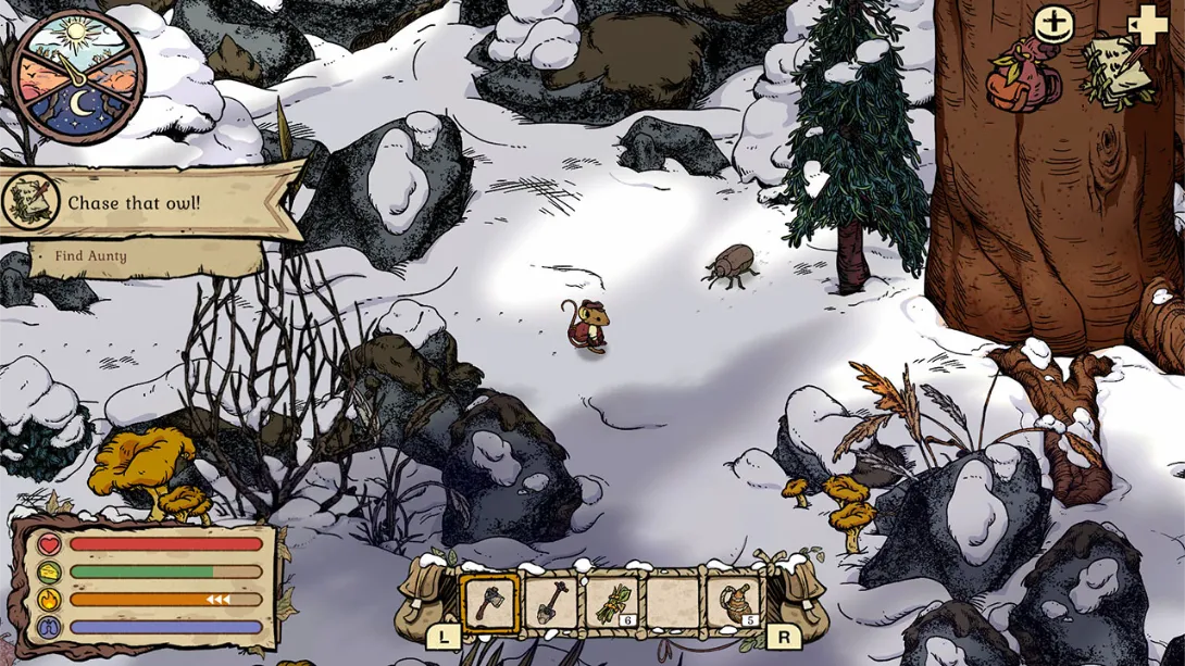 《Winter Burrow》是一款以小鼠为主角的治愈系生存冒险游戏,玩家将扮演一只离乡多年后重返森林的小鼠,在废墟中重建家园并寻找失踪的亲人。游戏结合了资源收集、制作建造和探索解谜,画风温馨如绘本,核心玩法类似《饥荒》但更侧重轻松体验。